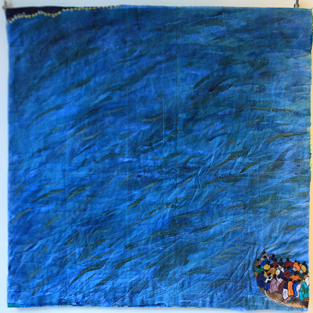 In a world driven by consumerism it seems as though life itself is expendable. The whole quilt is made from disposable items: a surgical gown, colour catcher laundry cloths and old worn out sheets.
