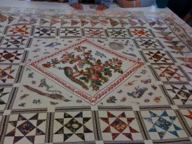 The last quilt she showed us was a large quilt that had been hand appliqued with flowers that were stitched on with tiny blanket stitches and must have taken a very long time to make.