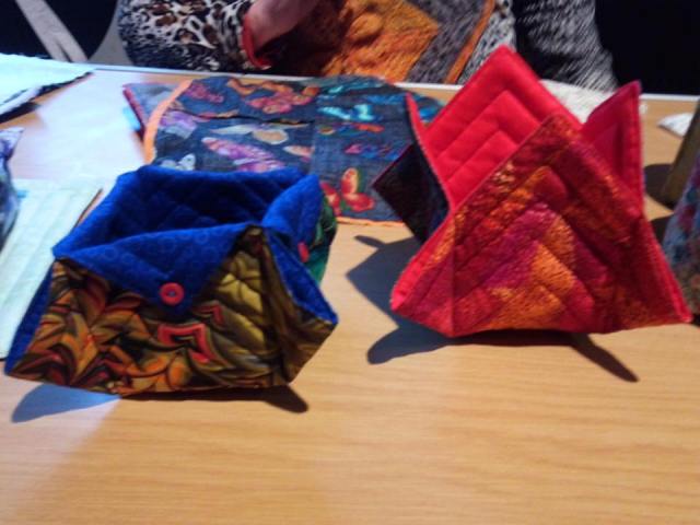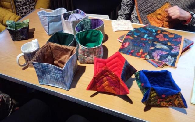 Anne H – Soft Fabric BoxesBrian says: “Anne H gave us a well thought out talk: starting with plain, useful although pretty boxes and then developed her theme into more ornate and fancy in different sizes. “