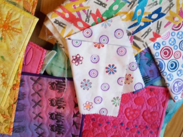 In addition to a wonderful morning, in the afternoon our Chair, Paula demonstrated stencilling on velvet. Photographs of some of the results are at the bottom of this blog.