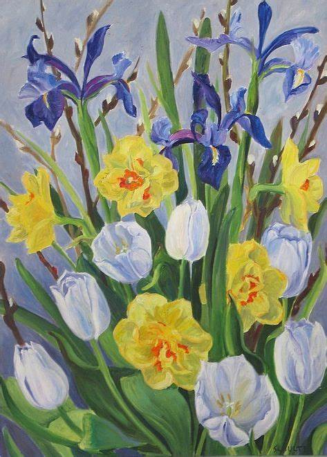I have been busy planting up pots. Pink cyclamen for winter and tulips, daffodils, hyacinths and iris for spring. [Artwork is from Elena Oleniuc].