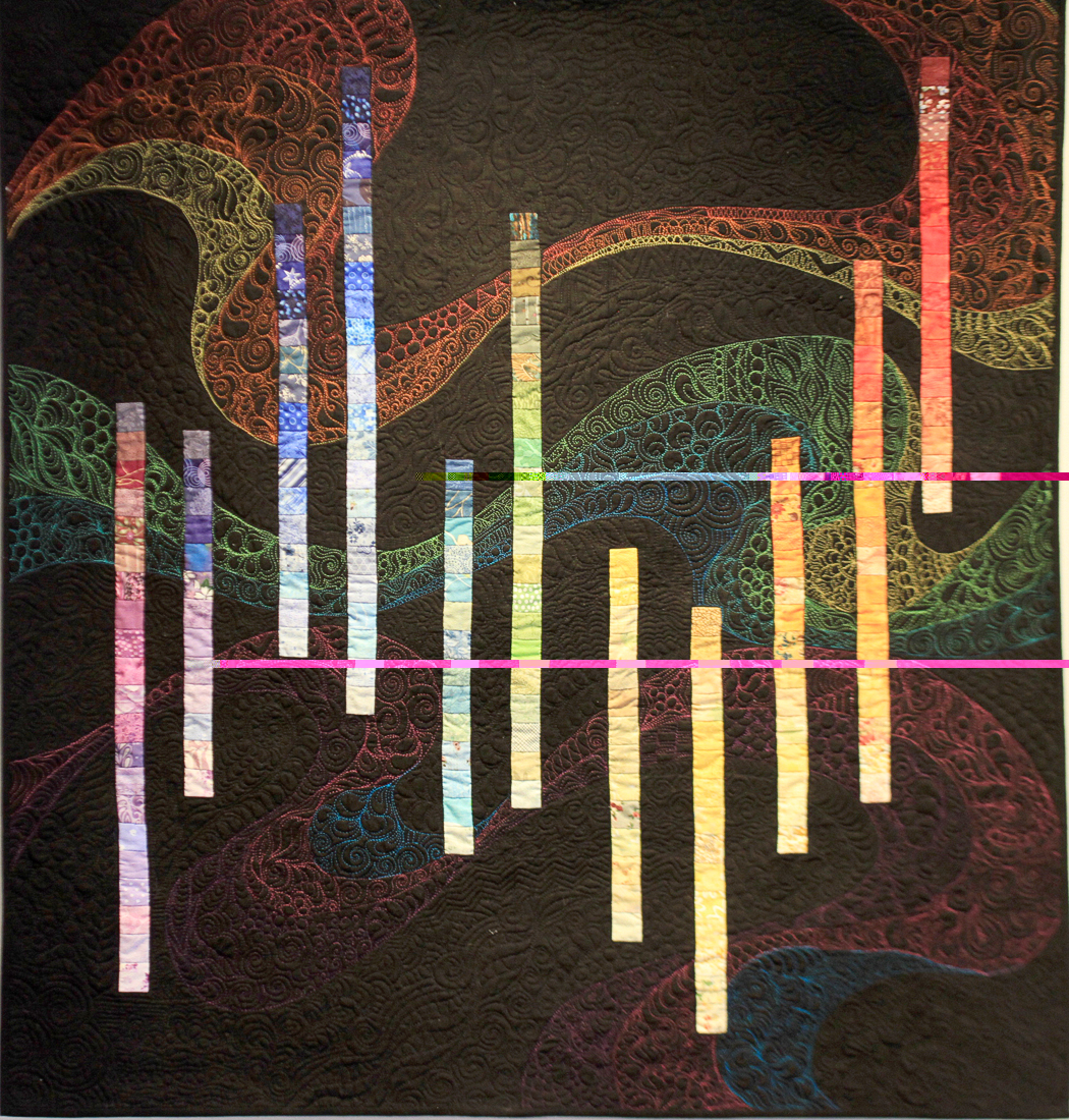 I wanted to see how the darkness/black fabric shows and brightens other colours in my quilt just like Aurora in the night sky.
