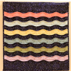 Inspired by Northern Lights. The fabrics for the front are all cotton. Simply quilted to represent movement of the lights in a night sky. Sequin’s are used to represent stars flickering through the colours.