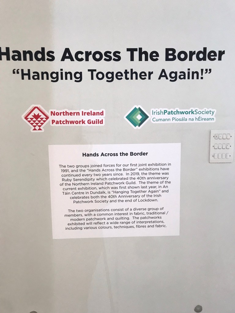 `Hands Across the Border` is a joint venture between NIPG and IPS [Irish Patchwork Society]. Every other year either NIPG or IPS hold an exhibition of work made by each of these groups.